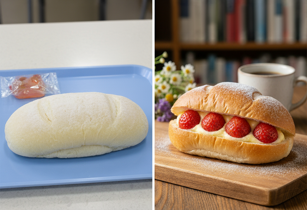 ここで、コッペパンの「文脈」が決定的に変わりました。それまで「義務」として食べていた小学生の「給食」から、お腹を空かせた高校生が「購買」で自ら「選択」して買う「ごちそう」へと進化したのです。