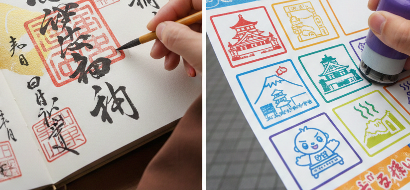 駅や観光案内所に置かれた記念スタンプと、御朱印。どちらも「訪れた証」である点では似ていますが、その構造は決定的に異なります。