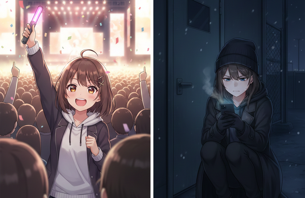 「生活費を削ってチケット代にする」「仕事を休んで遠征する」といった状態が続くと、経済的・社会的に破綻するリスクがあります。