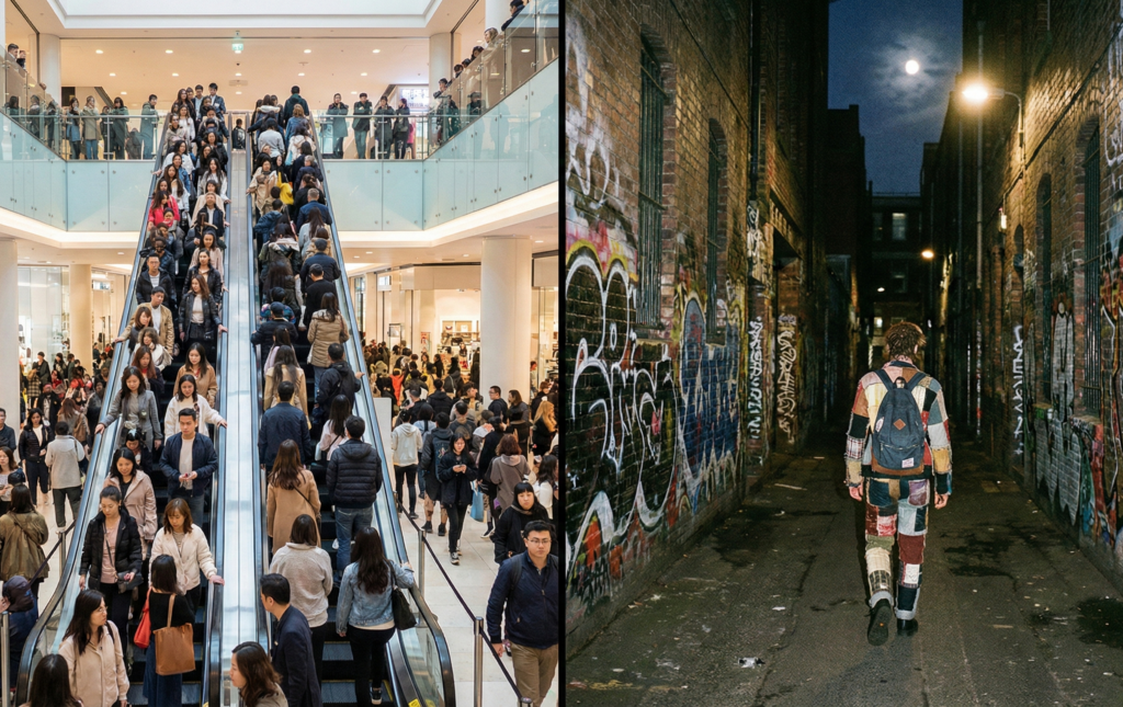 - サブカル的消費は「遠心力」:中心(流行)から離れようとする力が働きます。高円寺のように、既製品ではなくDIY精神が息づく街を好み、中野ブロードウェイのような混沌とした場所で「自力で掘り出す」プロセス自体を楽しみます。