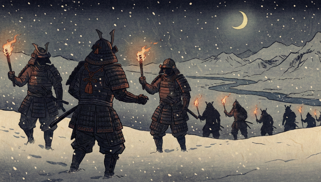 雪の降りしきる深夜の乱戦。同士討ちを防ぐために、彼らは厳格な合言葉を定めました。