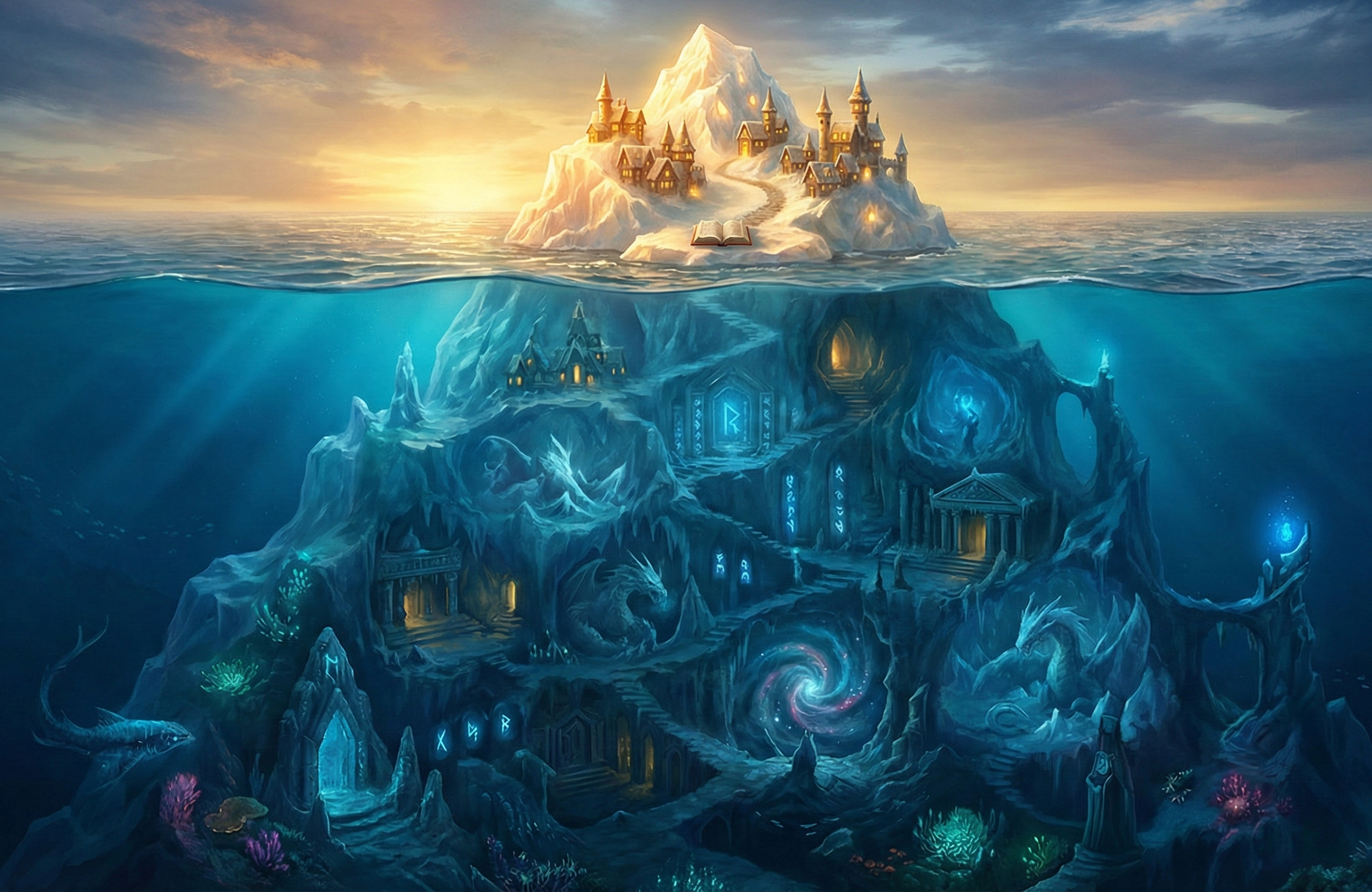 キャラクターだけでなく、舞台となる世界にも「氷山の下」を用意します。
