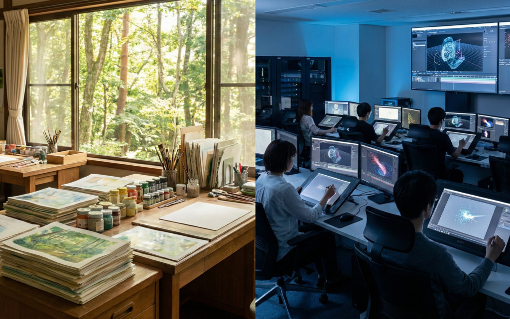 今、業界に最も急激な変革をもたらそうとしているのが「生成AI」の台頭です。慢性的な人手不足とタイトなスケジュールに悩む現場において、AIは強力な効率化ツールとして期待されており、作画の中割り、彩色、背景美術などの工程で導入実験が急速に進んでいます。