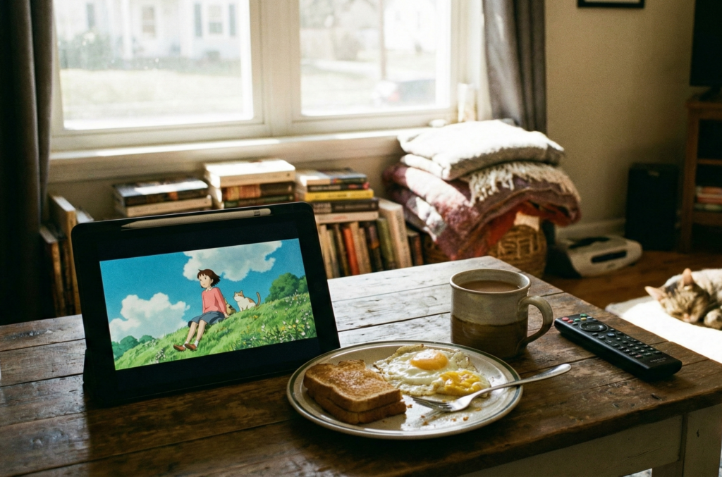 映画館のように部屋の照明を落としてみましょう。視覚的なノイズ(部屋の散らかりや時計など)が減り、意識が作品世界へ集中します。特に近年の高品質なアニメは光や影の演出が繊細なので、暗くすることでその美しさをより深く味わえます。また、イヤホンやヘッドホンの使用も強くおすすめします。劇伴音楽や声優さんの微かな息遣いまで拾い上げることで、感情の揺さぶられ方が格段に上がります。