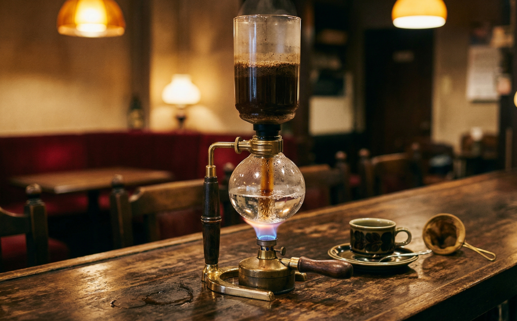 純喫茶は、コーヒーや紅茶の香りや味わいを深く楽しみ、静かな空間で読書をしたり、穏やかな会話を交わしたりするための場所。そこにお酒による喧騒はありません。響くのは、カップとソーサーが触れ合う音や、サイフォンでお湯がコポコポと沸く音、そして控えめなクラシックやジャズ。こうしたすべての要素が、コーヒーを楽しむための空間を作り上げています。