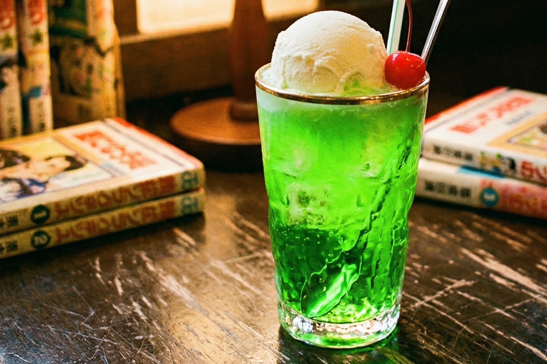 エメラルドグリーンのメロンソーダや、銀皿のナポリタン、自立するほど硬いプリン。これらは視覚的なインパクトが強く、SNSで爆発的な「映え」を生み出します。