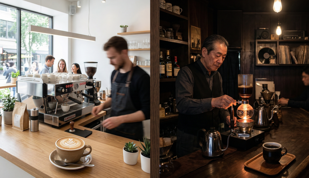 一方、純喫茶は「普遍性」が命。トレンドに左右されず、マスターがサイフォンやネルドリップで丁寧に淹れるブレンドコーヒーが主役です。食事も、銀皿に乗ったナポリタン、厚切りのバタートースト、硬めの自家製プリン、鮮やかなメロンクリームソーダなど、昭和から変わらない顔ぶれが並びます。「いつ行ってもあの味に出会える安心感」が最大の魅力です。