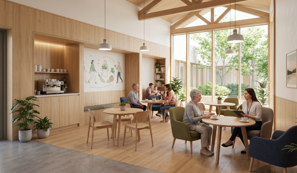高齢者やがん患者、その家族をはじめとする地域住民が、病気や介護、日々のちょっとした悩みを、予約なし・無料で気軽に相談できるオープンな居場所です。医療職だけでなく、社会福祉士や地域の住民、学生などが立場を超えてつながり合い、人々が孤立せずに支え合うための入り口として、全国各地に広がりを見せています。