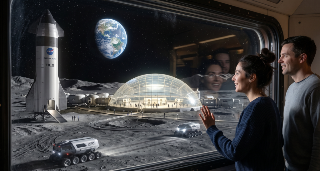 技術的なマイルストーンとしては、まず2020年代後半のアルテミス計画による有人着陸の成功と、民間着陸船による高頻度な物資輸送の確立が第一ステップとなります。その後、2030年代にかけてエネルギー網や通信網、そして居住モジュールが整備され、月面が「安全に長期滞在できる拠点」へと移行します。これら初期インフラ投資が完了し、再利用型ロケットの普及によって輸送コストが劇的に低下すれば、まずは2030年代後半に限られた富裕層向けの軌道上旅行から始まり、やがて2040年代にかけて、月面基地への民間人滞在ツアーが現実のものになると予測されています。