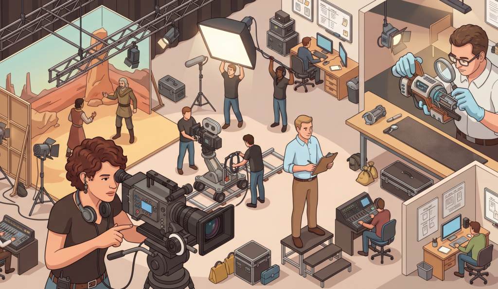 対してディレクターは「現場監督」です。プロデューサーが決めた企画を「どのように創るか(How)」を考え、現場のスタッフに指示を出して実務を回す「内側」のリーダーです。テレビ番組で例えるなら、スポンサーを集めてキャスティングをするのがプロデューサー、現場でカメラ割りやカンペ出しを行うのがディレクターです。
