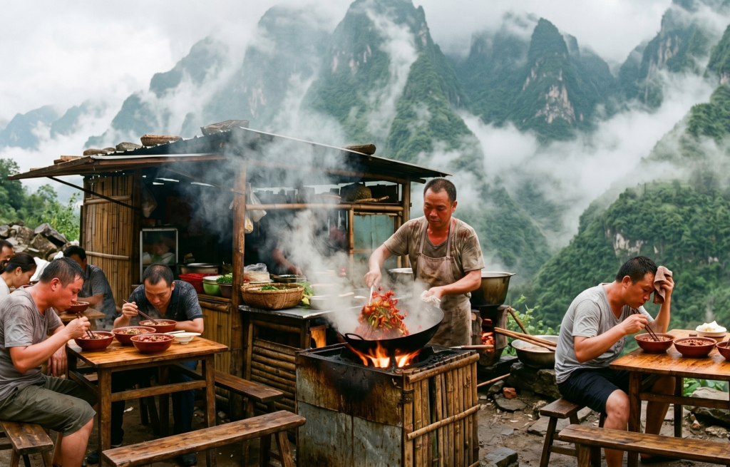 穏やかな名からは想像もつかない、真っ赤な油の海。そこに、唐辛子と花椒の嵐が吹き荒れる、激辛煮込み料理。塩井戸での過酷な肉体労働を支えた、エネルギーの塊です。